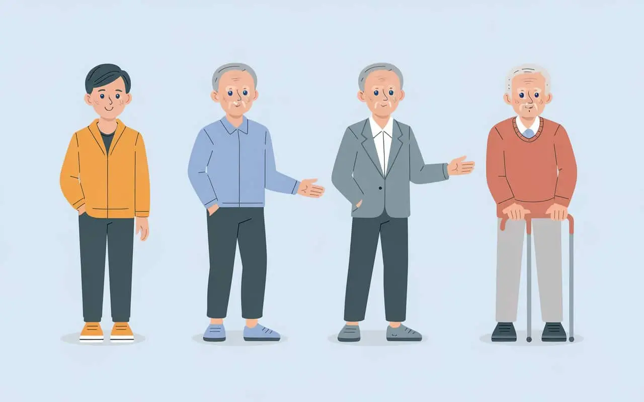 Du siehst richtig gut aus, mit 70! Weißt du noch, warum du vor 50 Jahren so einen konservativen Anzug mit Weste und Kravatte getragen hast? Passt nicht so ganz zur Frisur… 🙂